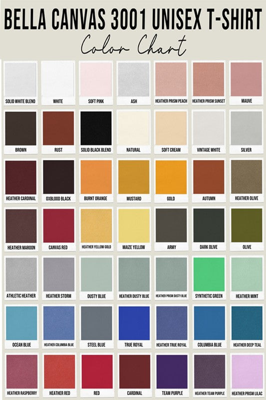 Bella Canvas Unisex. Solid Colors: 4.2 oz., 100% Airlume combed and ring-spun cotton. Heather Colors 52% airlume combed and ringspun cotton, 48% polyester**We use professionally screen printed transfers**